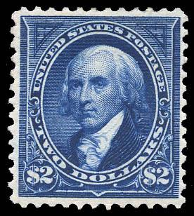 1894, $2 Madison, bright blue, unwatermarked (Scott 262), lovely color and centering, o.g., hinged; there is a small corner crease at the top left ending in a small tear (you need a magnifier to see it), otherwise Fine to Very Fine. Scott $2,750. Estimate $400 - 600. Scott $2,750 Suggested Bid $400-600 (Image)