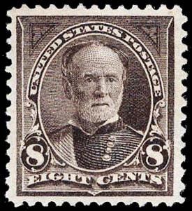 1895, 8¢ Sherman, violet brown, D.L. watermark (Scott 272), lovely centering and bright fresh color, o.g., never hinged, Very Fine. Scott $210. Estimate $150 - 200. Scott $210 Suggested Bid $150-200 (Image)