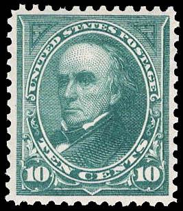 1895, 10¢ Webster, dark green, D.L. watermark (Scott 273), a beautiful stamp, o.g., never hinged, Very Fine, with 2023 P.S.A.G. certificate conservatively graded VF 80. Scott $280. SMQ $280. Estimate $180 - 240. Scott $280 Suggested Bid $180-240 (Image)