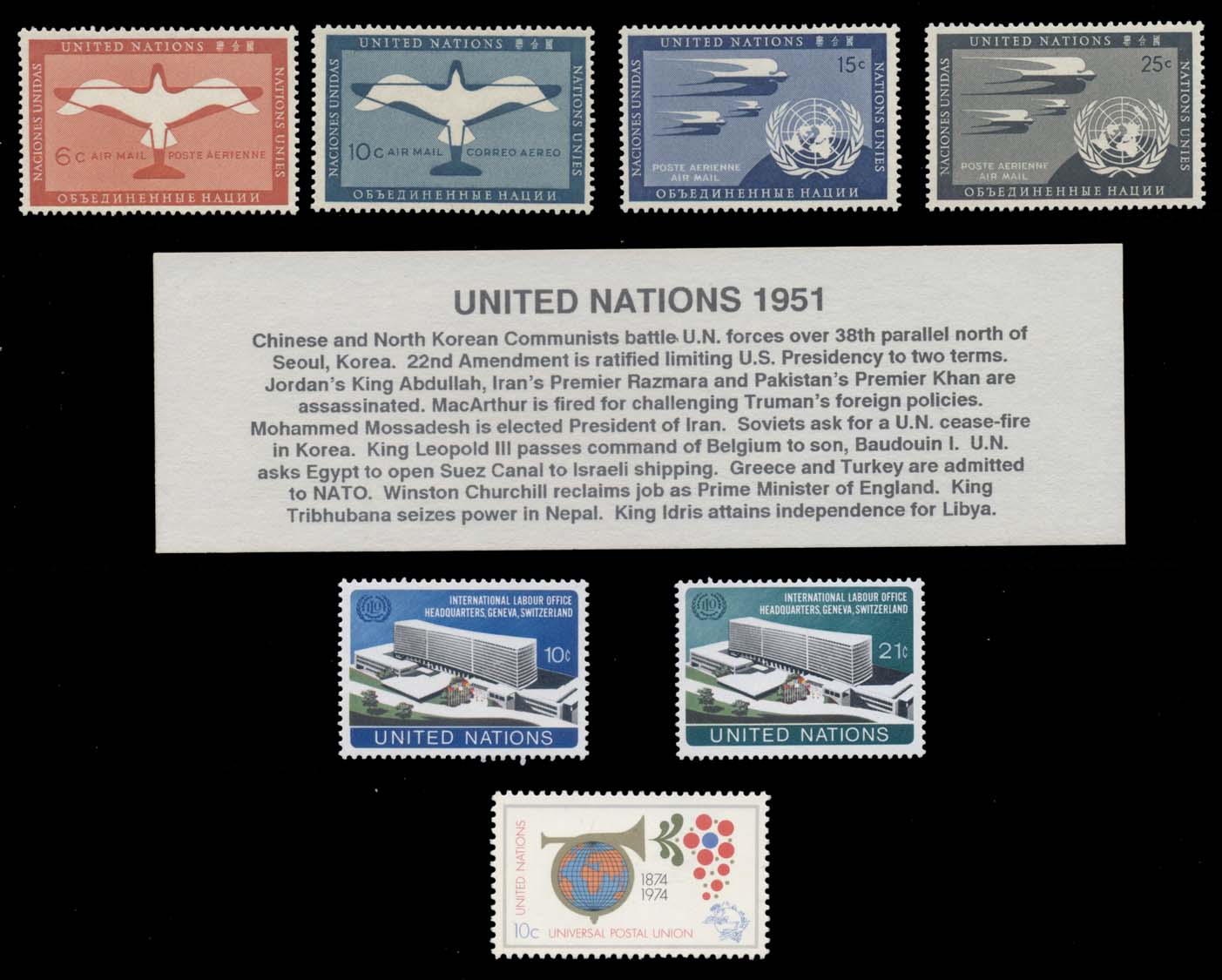 United Nations 1//636,Collection of about (750) stamps and (10) Souvenir Sheets, VF NH, mounted in Hagner stock pages that are mounted in a Kenmore Stamp Company "United Nations" binder; (no album pages). Also included are about (60) UN Geneva issues. ECV $400 (Image)