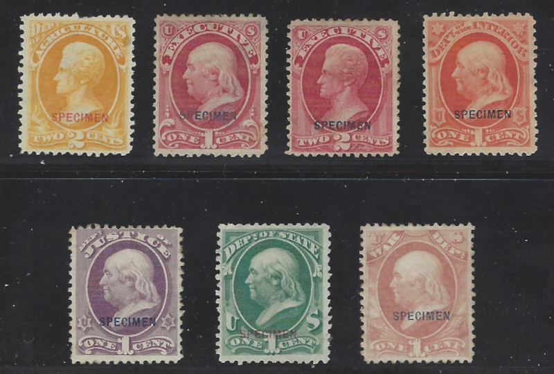 O2S // O83S (7 Diff.), All with " Specimen" Ovpt., 1875 Issues, Unused, No Gum, Few Blunt Perfs, Generally Sound Cond, F-VF, SCV is $303.00 (Image)