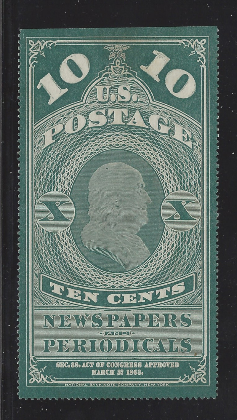 PR2a "10 c. Green", 1865 Issue, Unused, No Gum, Generally Sound Cond., VF, SCV is $300.00 (Image)
