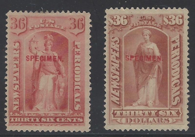 PR65S, PR77S, "Specimen" Ovpt. in Red, 1879 Issues, Unused, OG, Hinged, Sound Cond., Fine, SCV is $150.00 (Image)