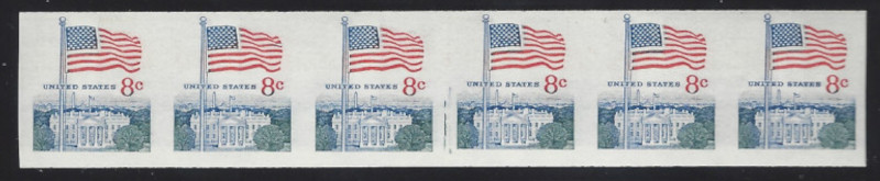 1338Gh "8 c. White House", Imperf. Strip of 6, with "Break Line" at Center, 1971 Issue, MNH, OG, Light Pencil Marks on Gum, Otherwise Sound Cond., F-VF, SCV is $150.00 (Est.) (Image)