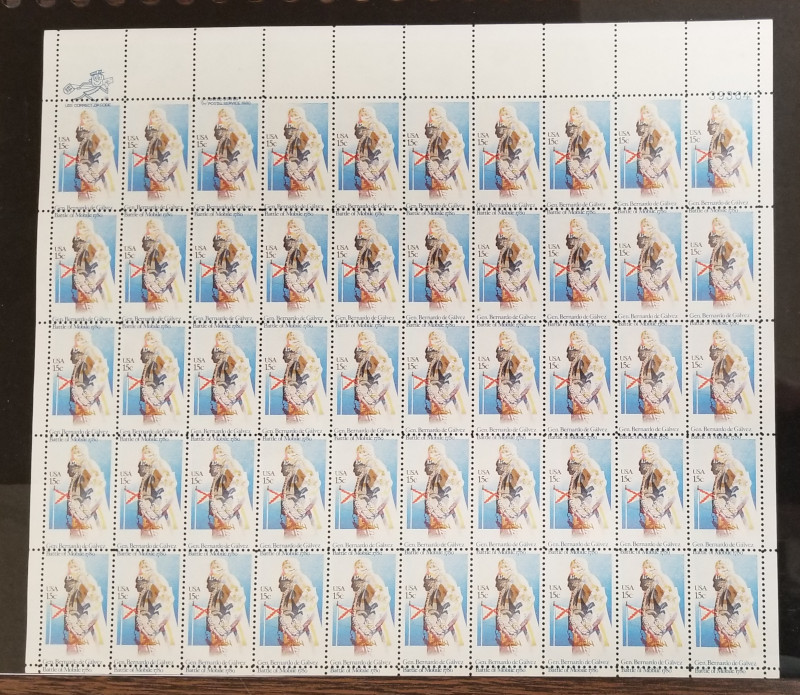 1826 "Gen. Galvez" (1980 Issue), Cmpt. Sheet of 50 with Blue Color (Engraved Printing) Shifted Down About 5 mm., "Zip Code", "Postal Service 1980" and Part of P# are Printed on the Top Row of Stamps, Unusual Item, MNH, OG, Sound Cond., VF for Item, Normal Sheet is Included for Comparison (Image)
