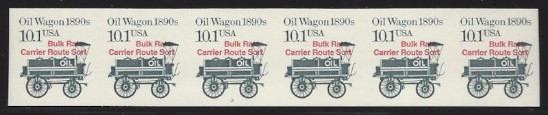 2130b "10.1 c. Oil Wagon", Imperf. Coil Strip of 6, With P# 3, Untagged, Red Precancel, 1988 Issue, MNH, OG, Sound Cond., XF, SCV is $180.00 (Est.) (Image)