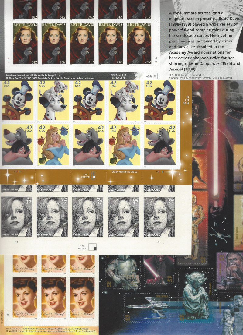 "MOVIE" Topical Issues, 26 Diff. Cmpt. Mint Sheets, Includes 11 Diff. "Legends of Hollywood", 32 c. to 44 c. Values, Sound Cond., All are MNH, VF, Face Value is $196.25 (Image)