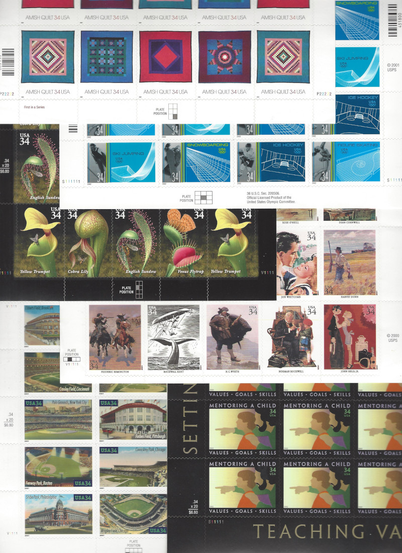 COMMEMORATIVE Issues, 35 Diff. Cmpt. Mint Sheets, 42 c. & 44 c. Values, Sound Cond., MNH, VF, Face Value is $276.04 (Image)