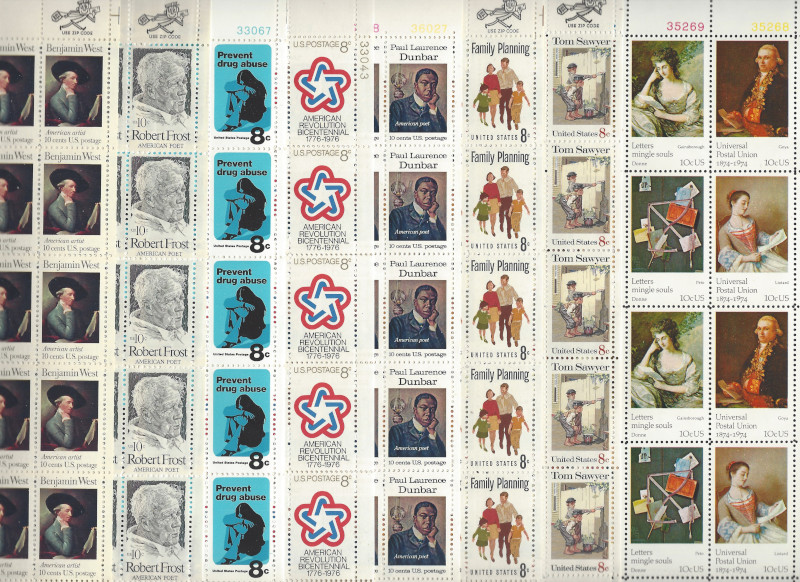 COMMEMORATIVE Issues, 53 Diff. Cmpt. Mint Sheets, 6 c. to 15 c. Values, Sound Cond., OG, MNH, F-VF, Face Value is $279.08 (Image)