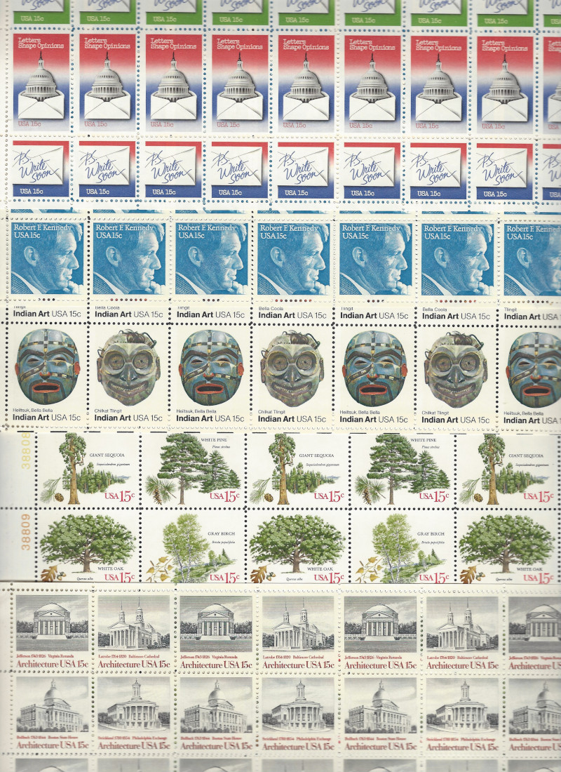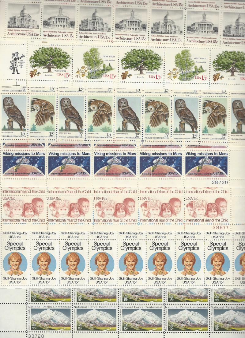 COMMEMORATIVE Issues, 36 Diff. Cmpt. Mint Sheets, All 15 c. Values, Sound Cond., Contained in Mint Sheet Albums, OG, MNH, F-VF, Face Value is $263.40 (Image)