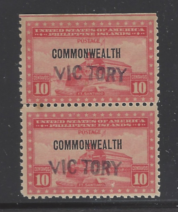 473 "10 c. Carmine Rose", Vert. Pair with "Victory" Ovpt., 1944 Issue, Unused, Dist. Tropical OG, F-VF, Appears Genuine But Offered "As-Is" (Image)