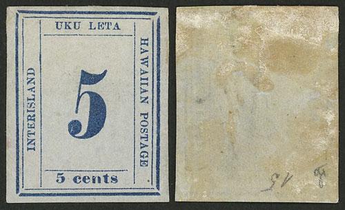 Sc.22, 1864/5 5c. blue, printed on bluish paper, mint WITH original gum (rare!), very fine quality! (Image)