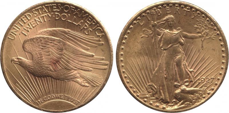 1927 $20 gold (33.44g 0.900) Saint-Gaudens KM 131 'In God We Trust' Below Eagle Reverse, aUnc. (Image1)