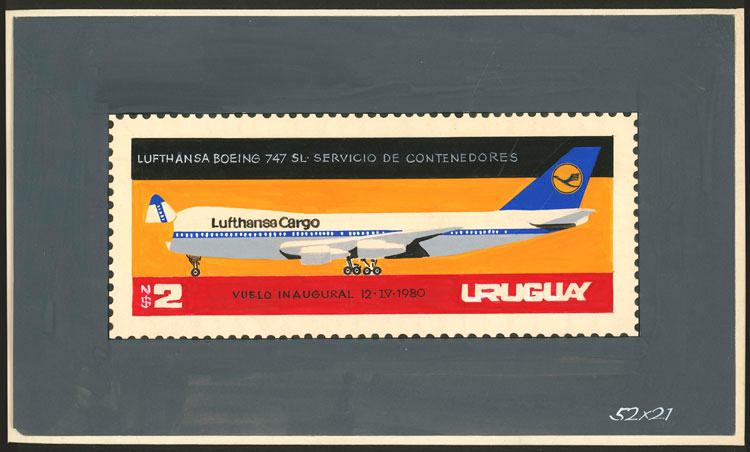 Sc.1064, 1980 Inauguration of Lufthansa´s air container transport service, unadopted design by the artist Medina-Medina, somewhat similar to the final design (also by the same artist), excellent quality and unique! (Image)