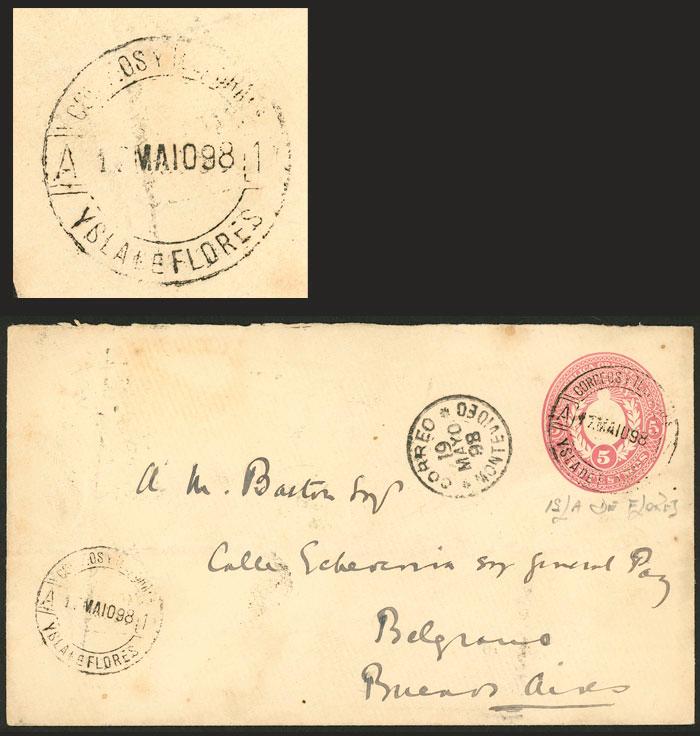 5c. Stationery envelope sent from YSLA DE FLORES to Buenos Aires on 17/MAY/1898, with transit mark of Montevideo and arrival (on back), very fine quality! (Image)
