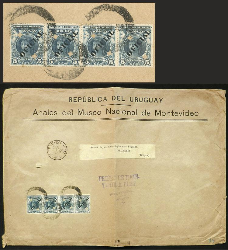 Official cover sent by the National Museum from Montevideo to Belgium on 12/NO/1903 with official postage of 20c., very fine quality, Ex-Loeb (selling price was US$250) (Image)