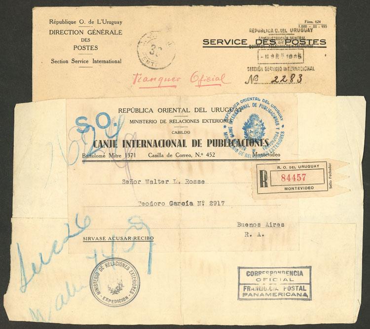 Official mail: Cover and parcel post front, both registered, sent to Argentina in 1935 with official postal franchise, very fine quality, interesting! (Image)