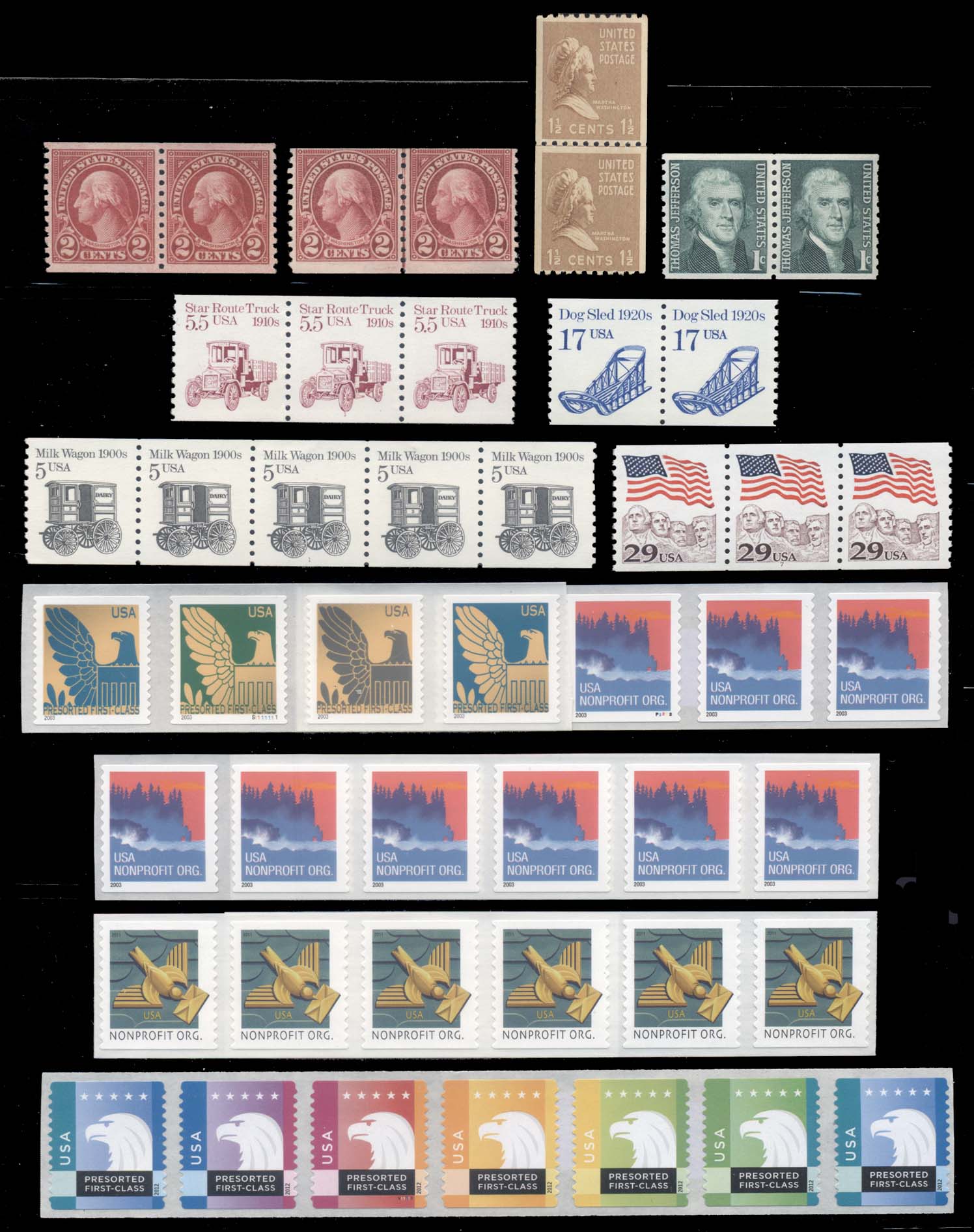 599//4590,Accumulation of about (60) Coil stamps, F-VF NH, includes pairs, line pairs, plate number strips of three, five and seven; a varied group Cat($32) (Image)