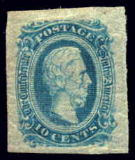CSA 13var, 20¢ 1863 George Washington, Albino Impression, XF Unused, very light diagonal bend, strong embossed impression with extremely minute traces of green ink; extremely RARE! (Image)