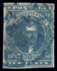 CSA 2b,10¢ Dark Blue, Hoyer & Ludwig Printing, four ample margins, couple creases and with blue cds ccl from VA Cat($305) (Image)