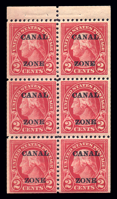 Canal Zone 73a,2¢ Carmine, Booklet Pane of 6, VF-XF NH, but with light DG, cv for hinged. Only (140,000) panes issued, 1974 APEX certificate Cat($175) (Image)