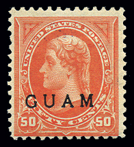 Guam 11,50¢ Orange, F-VF OG, 1996 Philatelic Foundation certificate noting "with tropicalized OG and a purple handstamp, which slightly bleeds through to the face." Cat($350) (Image)