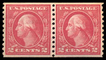 455,2¢ Carmine, Ty III, Coil Pair, XF-Superb NH, exceptionally nice! Cat($43) (Image)