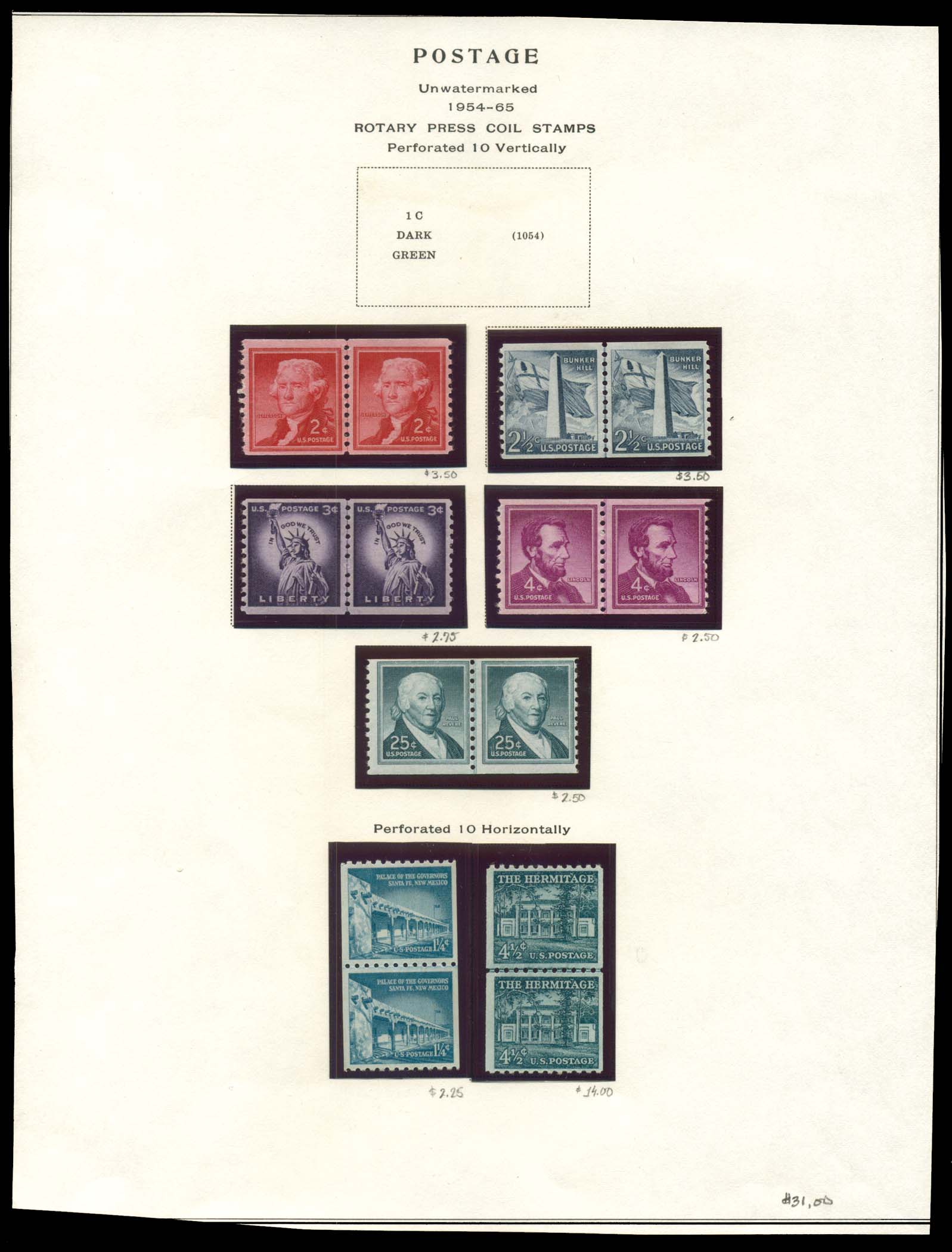 1054-59A,1¢-25¢ Liberty Issue Coil Stamp Pair and Joint Line Pairs (15 total), F-VF NH, face value $1.71 Cat($41) (Image)