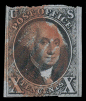 2,10¢ BLACK, 2½ margins with 1mm tear at bottom and red circular red grid ccl Cat($850) (Image)