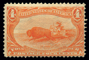 287,4¢ Trans-Mississippi, F-VF NH, but with tiny DG spot, cv as hinged Cat($110) (Image)