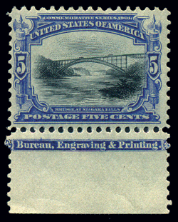 297,5¢ Pan-American, Bottom Margin Single with Bureau Imprint, F-VF VVVLH, beautiful color Cat($75) (Image)
