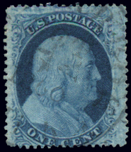 24,1¢ Blue, Ty V, Fine, with light OCT 1860 cds ccl, "D" relief, sound and fresh Cat($40) (Image)