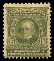 309,15¢ Olive Green, Fine OGHR, with light toning Cat($185) (Image)