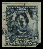 315,5¢ BLUE, IMPERF SINGLE, VF-XF, with three huge margins and with horizontal centerline at top, but with pulled lower right corner Cat($1,300) (Image)