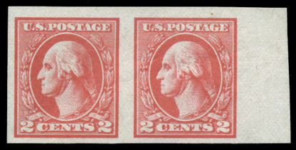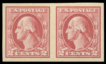 534,2¢ Carmine Rose, Ty Va, Right Side Margin Horizontal Imperforate Pair, VF NH Cat($55) (Image)