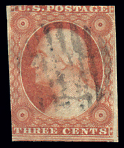 10,3¢ Orange Brown, Ty I, 2½ margins with small upper left corner crease and light circular grid ccl Cat($200) (Image)