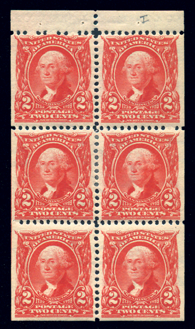 501b,3¢ Violet, Ty I, Booklet Pane of 6, F-VF NH Cat($125) (Image)