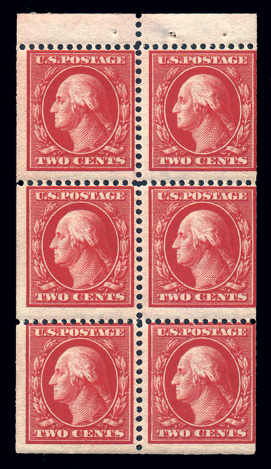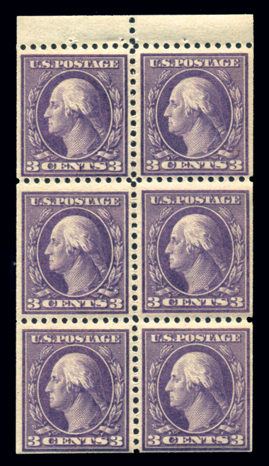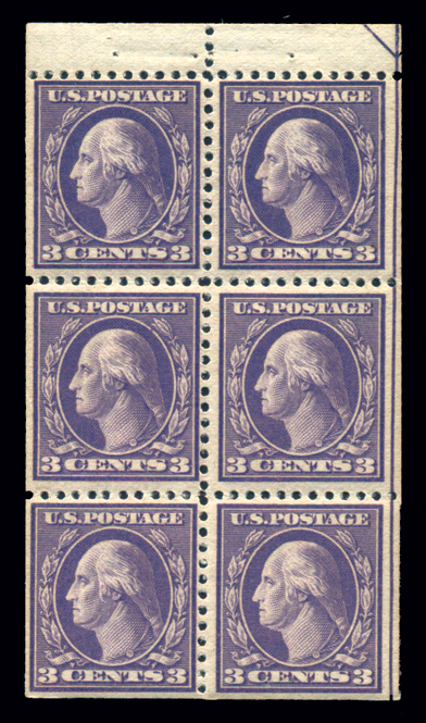 502b,3¢ Violet, Ty II, Booklet Pane of 6, Pos. B with Arrow in upper right tab and vertical line at right, VF N H, scarce position and strong color Cat($100) (Image)
