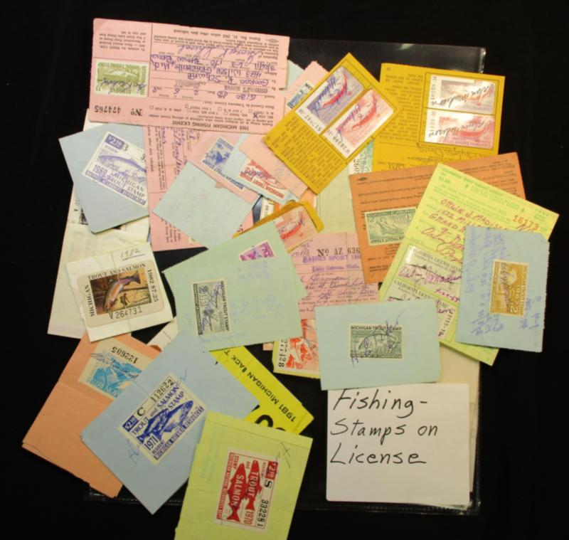 Hunting and Fishing Stamp Accumulation - Many 100s sorted in page holders. You'll see mint federal ducks, used federal ducks, federal ducks on license, mint and signed fishing stamps, and fishing stamps on license. Mixed condition. Must be viewed. (Est $250-350) (Image)