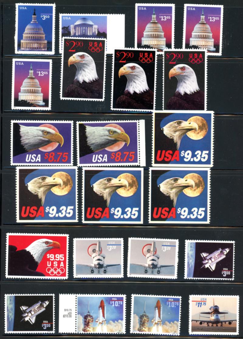 USA High Value Postage Group - All MNH/self-adhesive. Values range from $2.40 to $16.25. Clean, collectable, or usable. (Face $323) (Image)