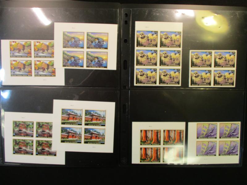 USA High Value Postage, All American Landmark Issues - Large variety of issues ranging from $4.80 to $28.75 in face value. Includes several on the "Buy List" like Bethesda Fountain in a sheetlet of 4 as issued. Also includes an imperf USS Arizona Memorial block of 4. Clean, MNH, F-VF or better! (Face $1740) (Image)
