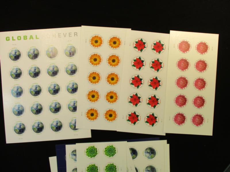 USA Global Forever Sheets and Multiples - 118 total stamps in 9 sheets of 10, a sheet of 20 and two blocks of 4. Nice variety of 2013//2022 issues. Face at $1.70 each. MNH F-VF. (Face $200) (Image)