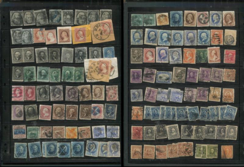 USA early duplicate collection, 1857-1903, est. Cat. $6800.00, noted #17, 33, 40, 63, 73, 78b, 83, 112, 113, 114, 115, 116, 117, 161, 162, 179, 205,and more, noted a few on paper with readable cancels, Brooklyn, Lynn, New York, and interesting lot for study. (Image)