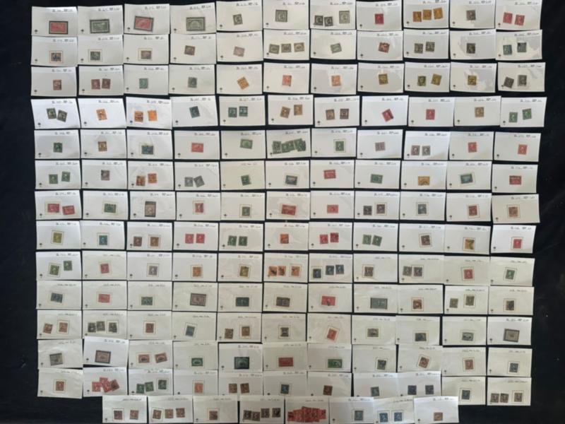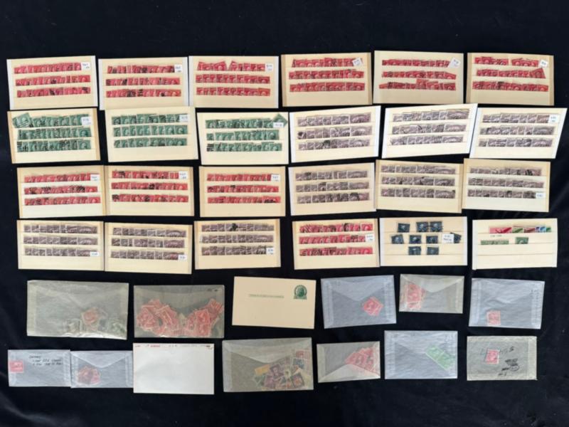 A small USA used stock in priced and identified 102's from 1869-1925 #113/#618. Includes used #216, #221 (4), #224 (2), #225 (3), #227 (3), #254, #275, #284, #296 (2), #297-#299, #309 (2), #310, #325-#338, #341, #385-#386, #394, #399-#403, #471, #476, #478, #538, #550, #572-#573, etc. Some minor duplication in places, generally overall f-vf. Total Scott- $1,368. (Image)