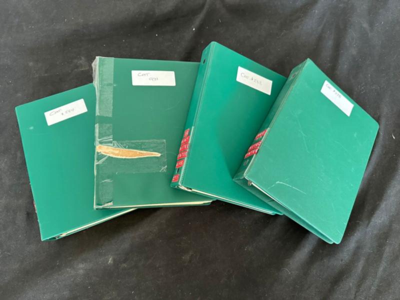 A never hinged and used USA dealers stock in 4 dealer books, all identified. Book 1 includes some earlier used faulty material #116, #220c, #238-#239, #304a. Used and sound #306/#4806a single with #1909 (2), #2122 (3), #3473, etc. A number of #R112 strips of 4 with CDS's and pen scripts. Book 2 includes appears all NH from #C71/#C131 with some duplication including #C76 PB (2) and Mr Zip and Mail Early, #C122-#C125 blocks of 4 (3), #C126 SS, etc. Book 3 includes mint #C4/#C11 with some duplication, and NH from #C12/#C70 Zip block of 4 with duplication, and does include #C25a booklet, #C38 PB, etc. Book 4 contains Special Delivery, Dues and other BOB appearing all NH. Includes #CE1-#CE2, #E13/#E23, #FA1 (a number of duplicated blocks of 4), #J64/#J104, #PS11a PB, #PS14, mint #R154 'Broken I', #WS1 (3), mint #WS2-#WS3, and a #WX22a (Type II) complete folder with booklet periods between dates. Lots of material throughout. Total Scott- approx $2,000. (Image)