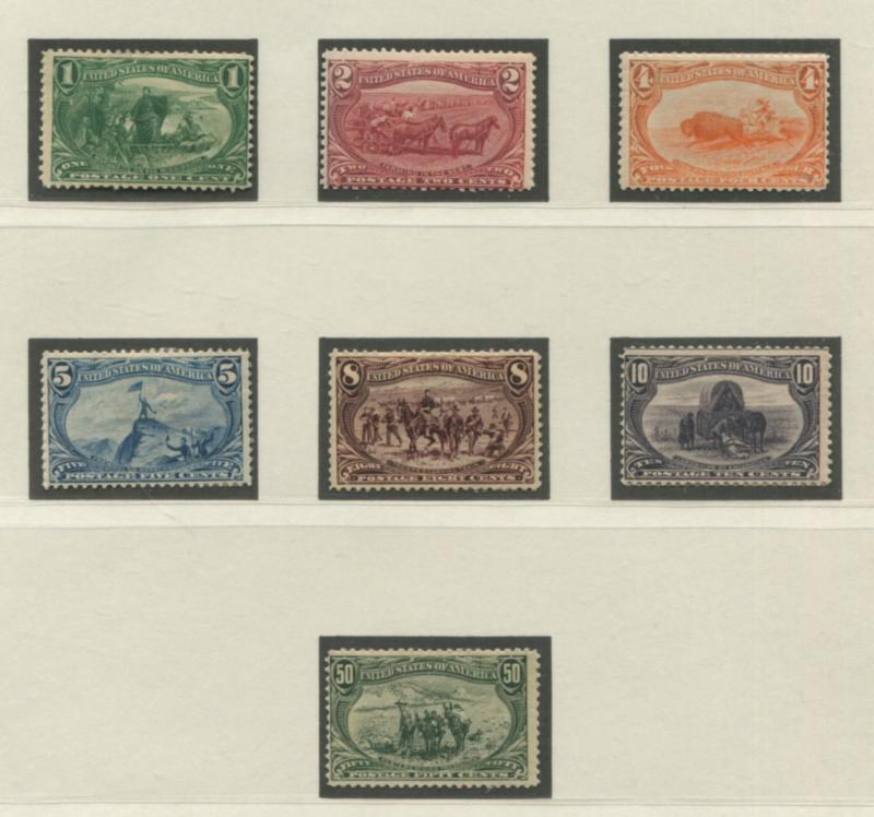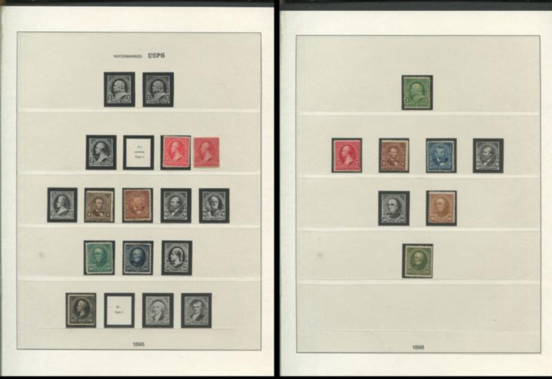 USA 1895-1898 #267/#284 Mint on 2 loose hingeless Lindner album pages. Fresh, generally centering at least fine, includes #276 Type I, and #283a Type II Vertical Watermark MNH. Total Scott- $1,989. (Image)