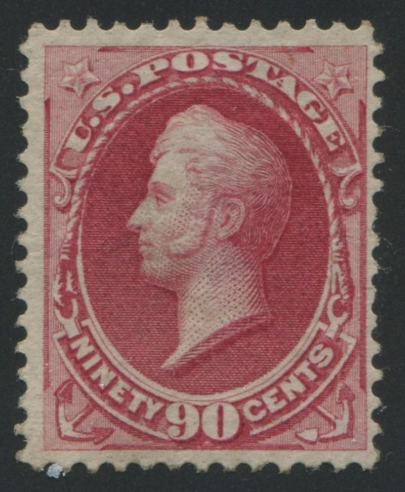 USA 1870 - 1871, #155, a MH 90c carmine, without grill, (with disturbed gum), Scott value $5000, has 1995 Philatelic Foundation Cert, appears f-vf (Image)
