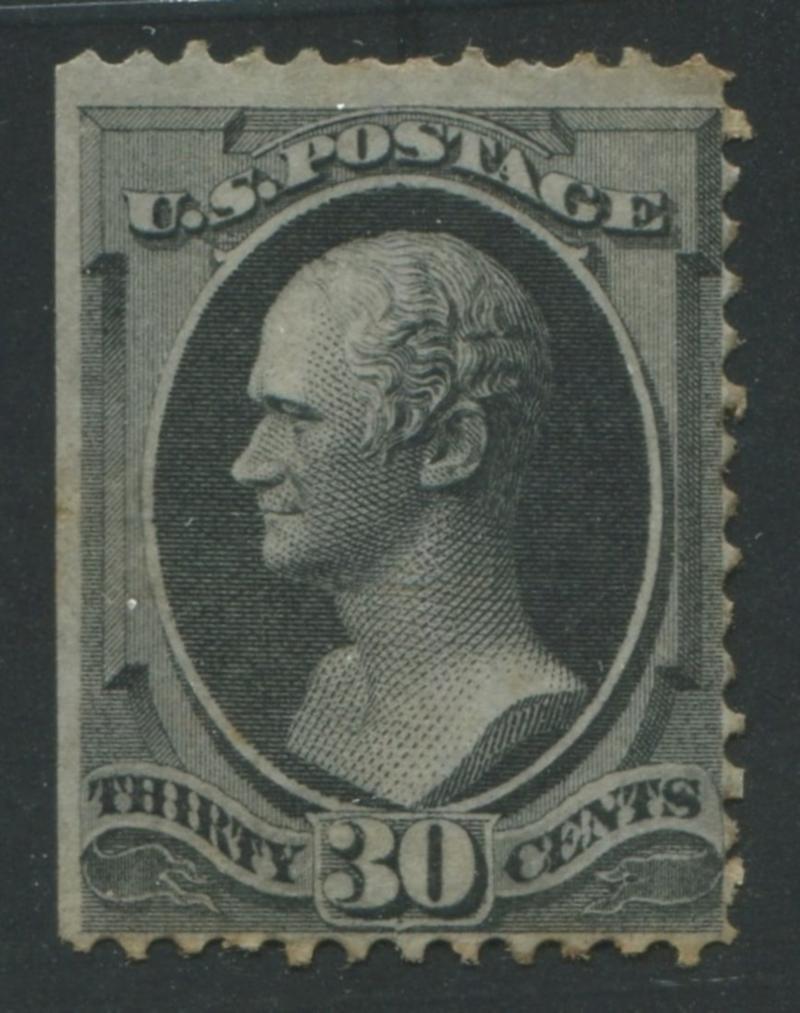 USA 1873 #165 30c Gray Black, Mint, Very large part OG, VG, a couple pulled perfs, straight edge at left, some toning to some perfs, but an affordable presentable example. Scott- $3,750. (Image)