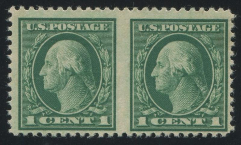 USA 1917 -1919, #498b a LH 1c green IMPERFORATE inbetween pair, with bright colour, Scott value $600, has been signed by Sloane on reverse and has a 1991 Philatelic Foundation Cert, appears f-vf (Image)
