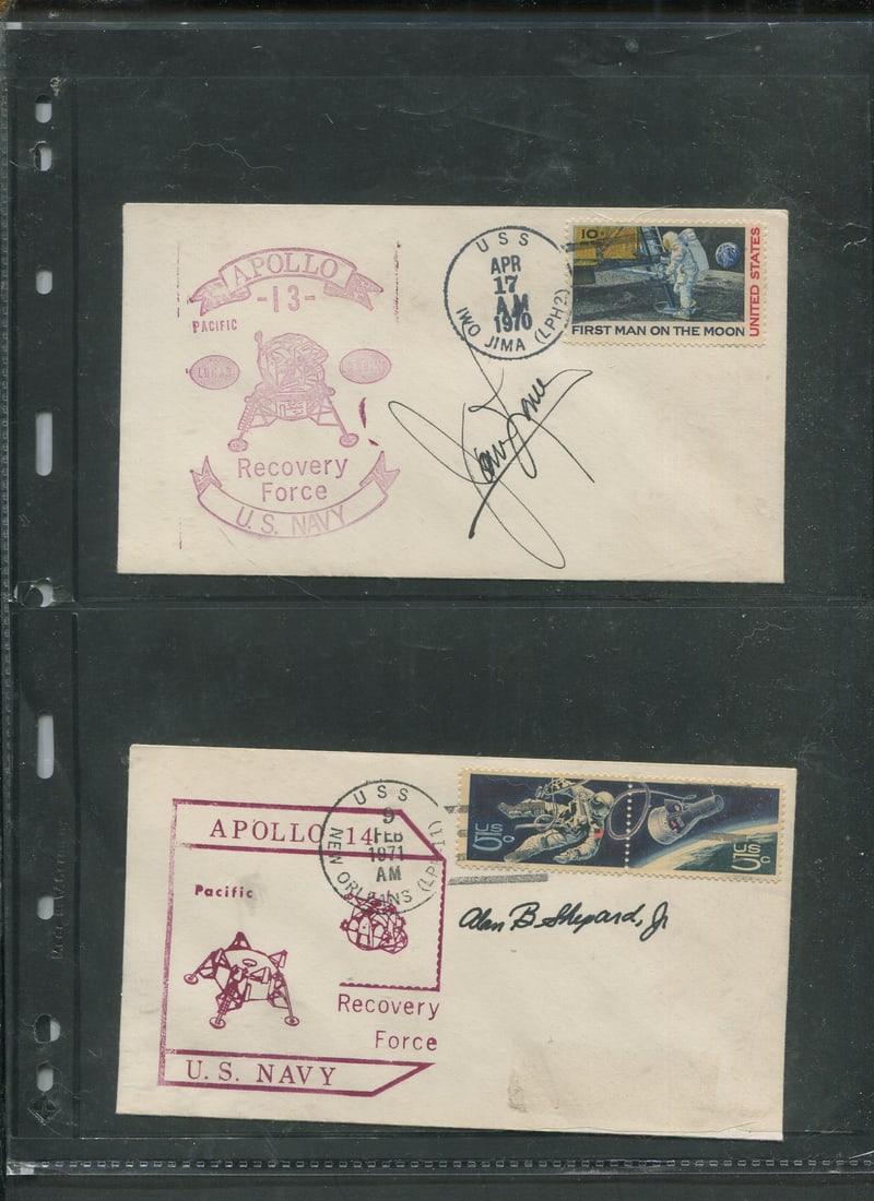 USA 1970 - 1971, Apollo 13 covers, with crew member Jim Lovell's autograph and from Apollo 14, a cover withcrew member Alan Shepard autograph, two nice covers with important people from the space world, appears f-vf (Image)